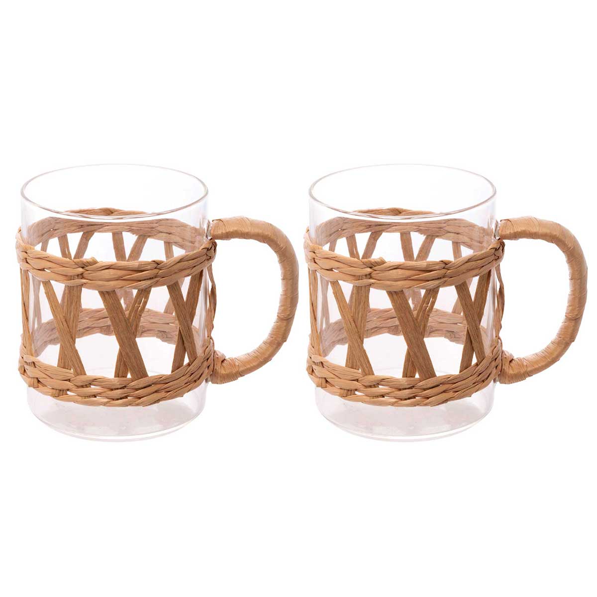 CJ 2 CANECAS DE VIDRO E FIBRA NATURAL 400ML