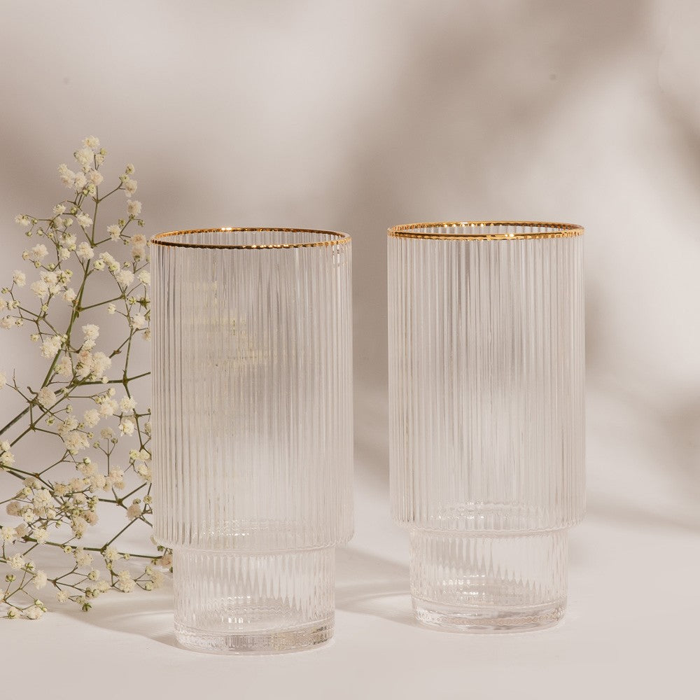 CJ 2 COPOS ALTOS DE CRISTAL C/FIO DE OURO LINES 400ml