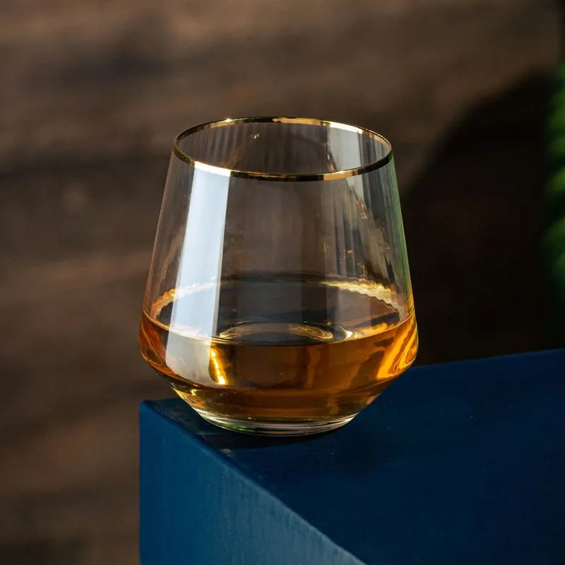 CJ 2 COPOS BAIXOS DE VIDRO C/ FIO DE OURO LINES 330ML