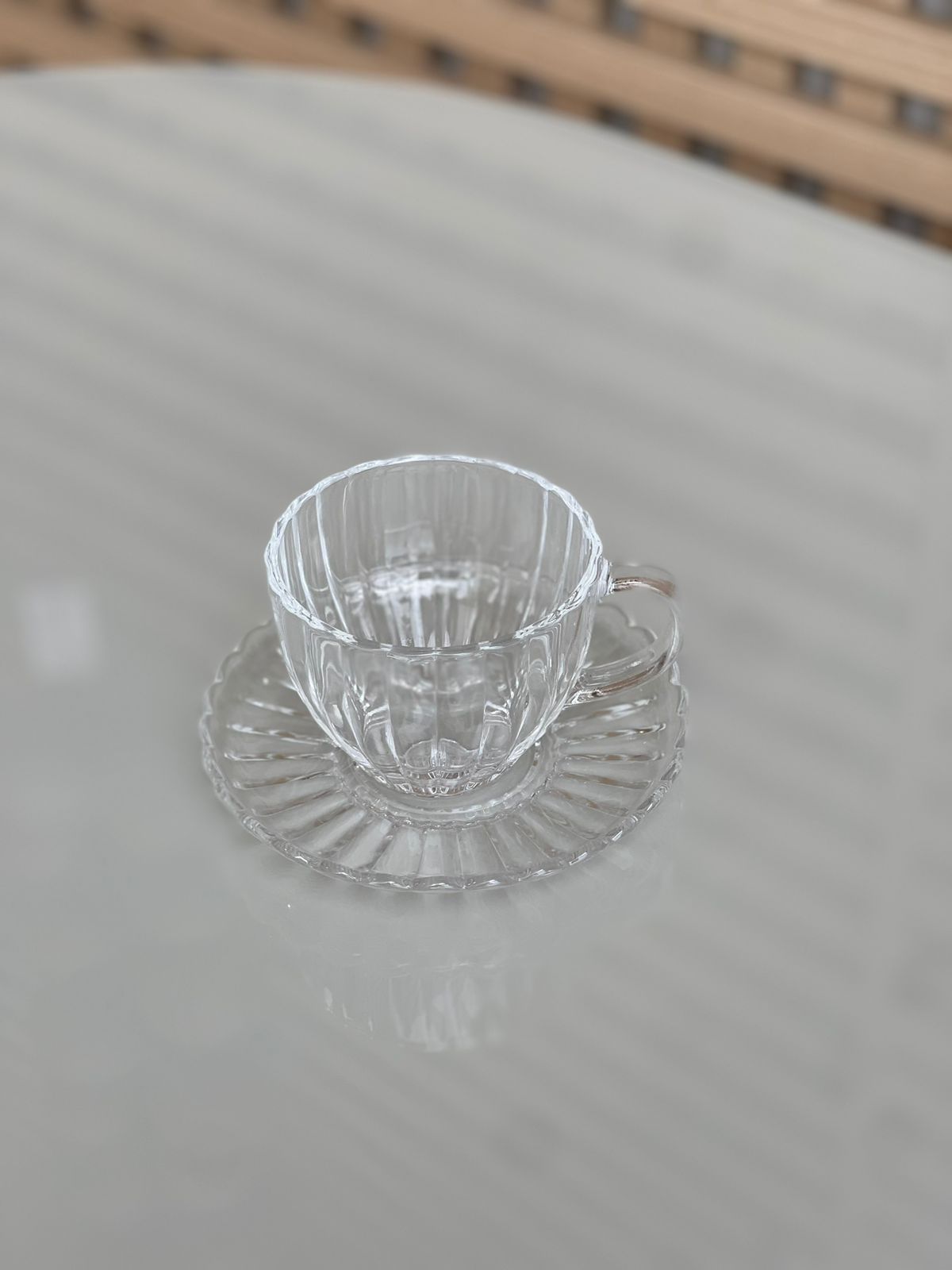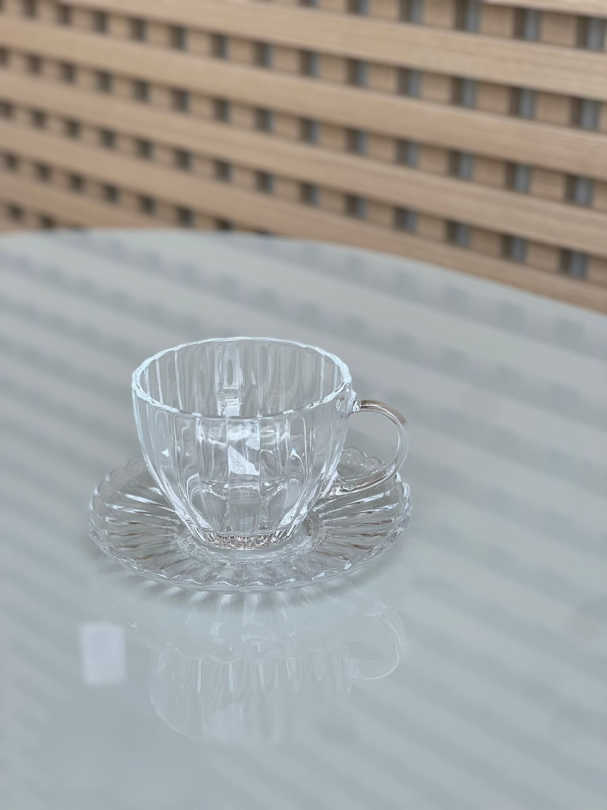 Cristal de Alta Qualidade: Cada xícara e pires é cuidadosamente produzido em cristal de alta qualidade, proporcionando um brilho excepcional e uma transparência que ressalta a beleza da sua bebida favorita.