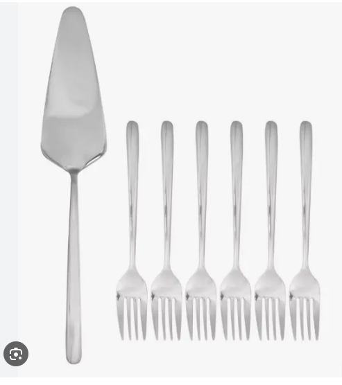 CJ 7 PECAS ESPATULA PARA BOLO E 6 GARFOS PARA SOBREMESA VIENA ACO INOX