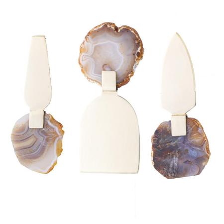 CONJUNTO 3 FACAS PARA QUEIJO DE ACO INOX DOURADO AGATA