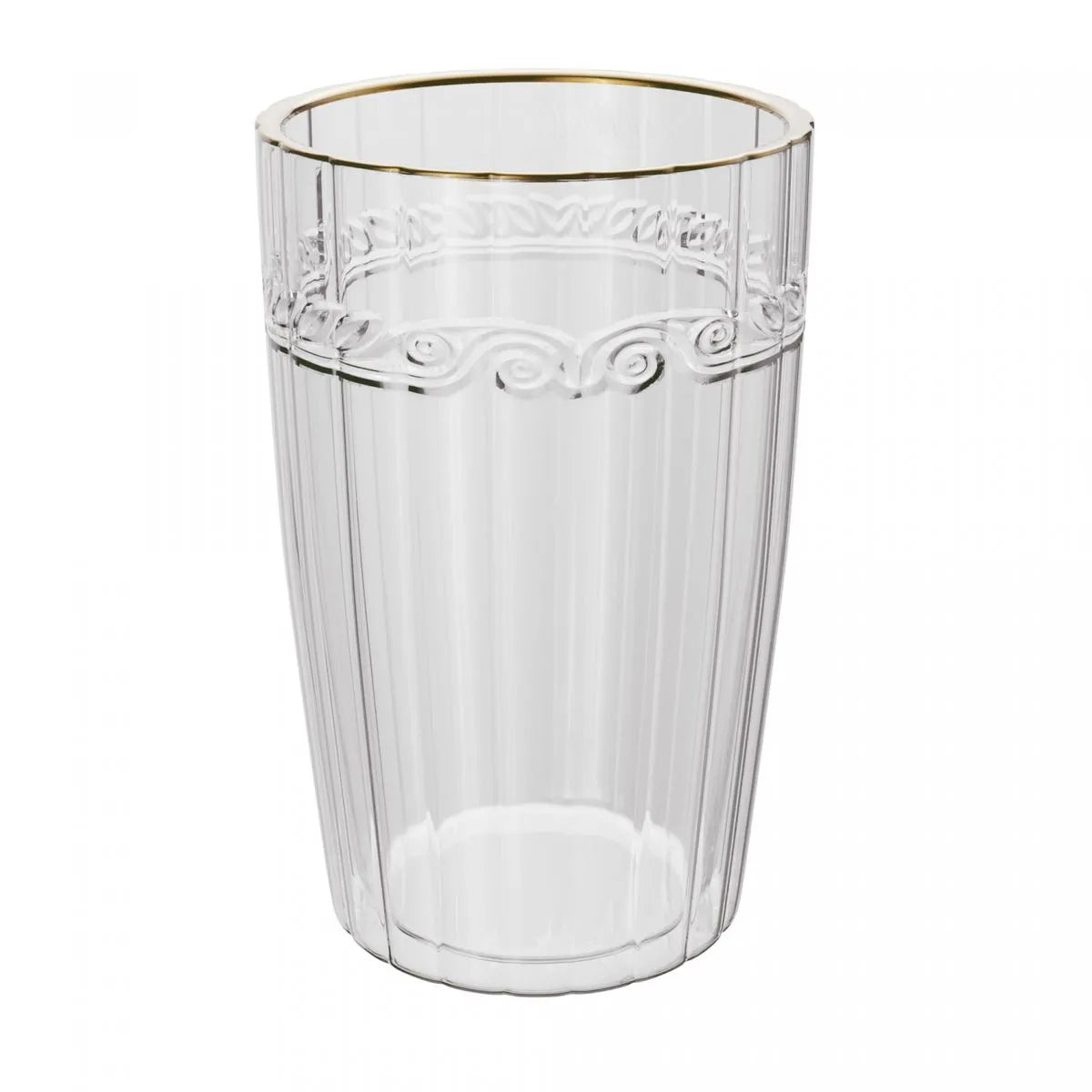 Cada copo é habilmente detalhado com um fio de ouro imperial, adicionando um toque de opulência e sofisticação. Seja para um jantar íntimo, uma festa requintada ou para presentear alguém especial, esses copos são a escolha perfeita para quem busca combinar estilo, qualidade e consciência ambiental.
